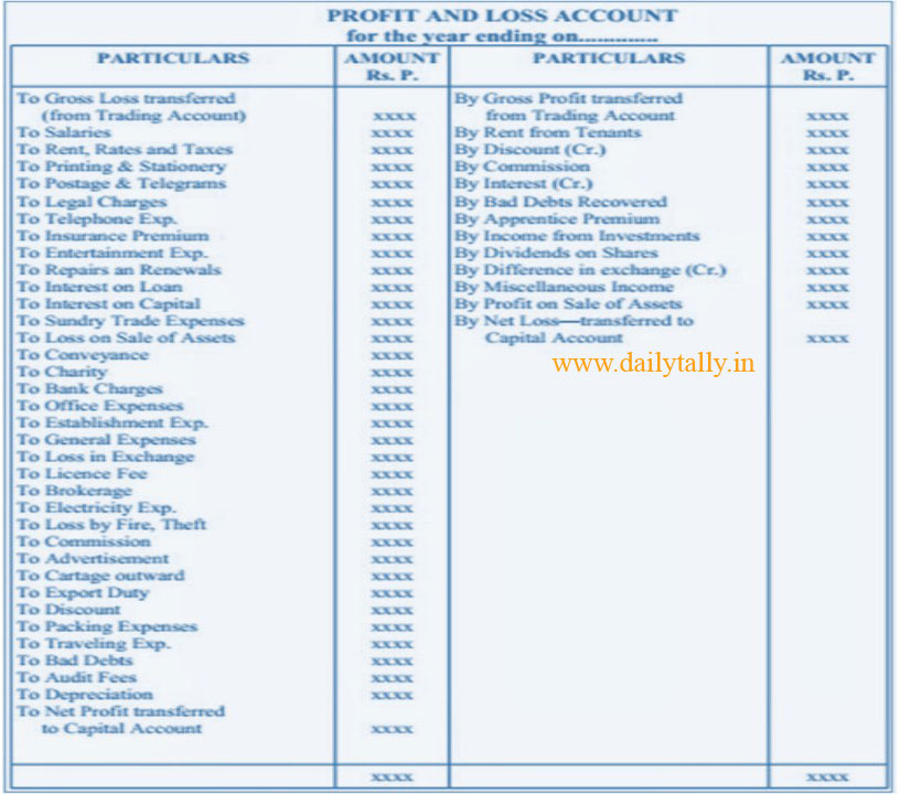 Profit and Loss Account Format