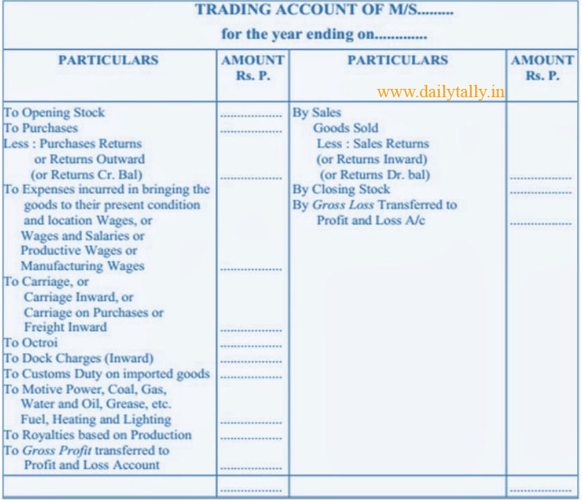 Trading Account Format