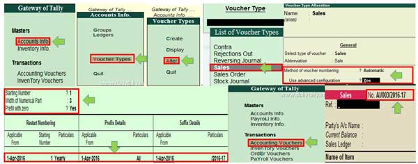 How to set prefix and suffix on sales invoice in Tally ERP 9