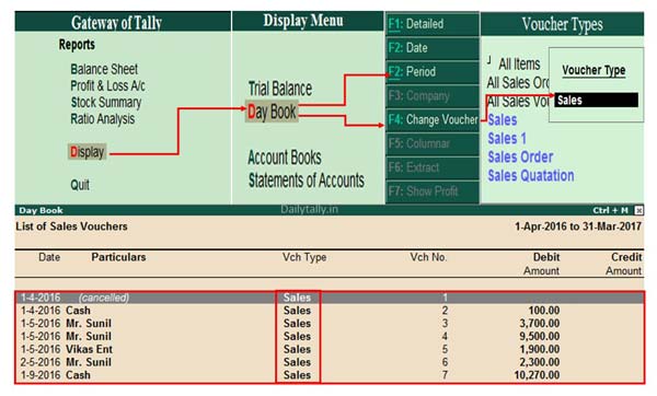 How to View and Print Voucher wise Reports in Day Book of Tally ERP 9